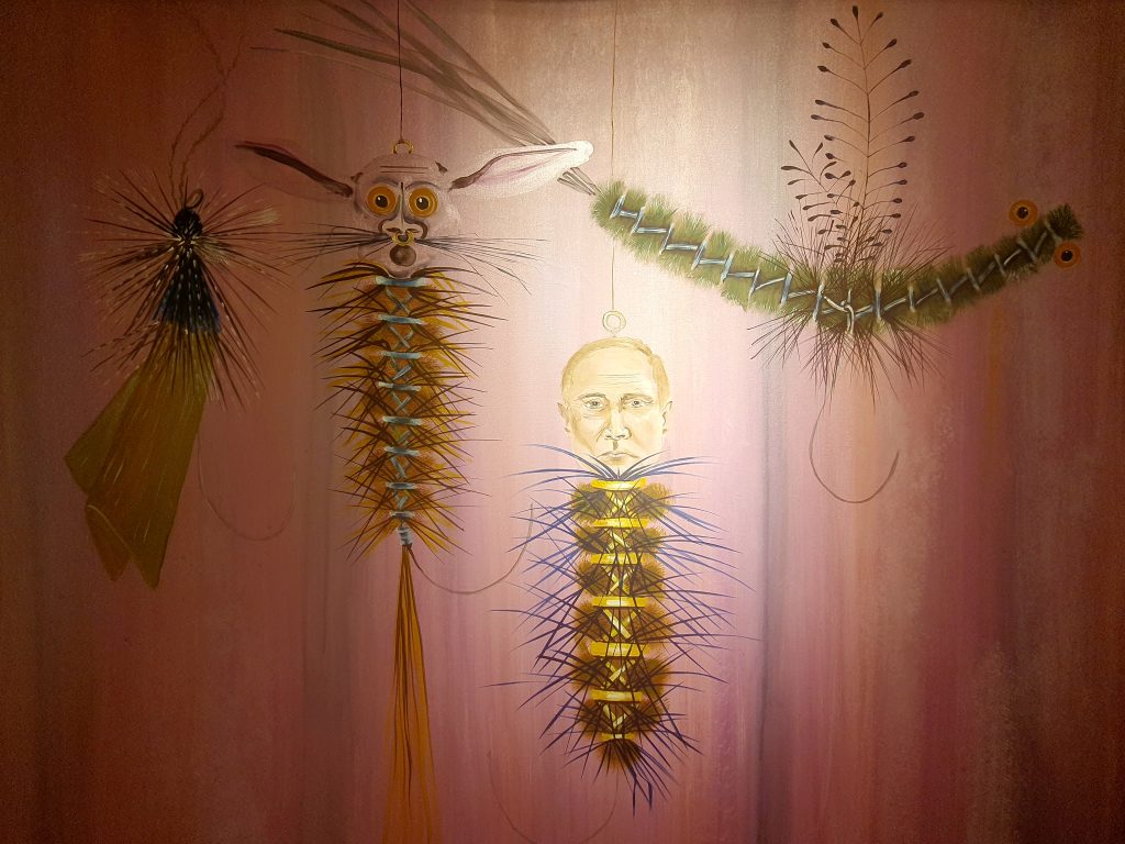 Med skimrande emaljer, lager av färg och taktila former skapar hon en bildvärld där havets väsen möter sportfiskarens utrustning. Här samsas sirener, Medusa och djurliknande varelser med fiskstim och dolda krokar. Det lekfulla och dekorativa balanseras mot ett allvar där lockelsen alltid bär på risk.